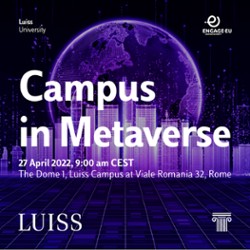 Luiss University is organizing this hybrid event in Rome and online. Students from 7 ENGAGE partners are invited to imagine a day "on boarding" in the metaverse. In this space, it will be possible, through an avatar, to experience everything around us, interact with other avatars, and with the elements in the space, it will alco be possible to explore different environments and cultural approaches of hospitality.