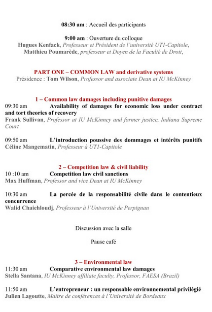 Institue of Private Law of the Faculty of Law and Political Science and the Indiana University Robert H. McKinney School of Law are pleased to invite you to a conference on comparative civil liability for business.