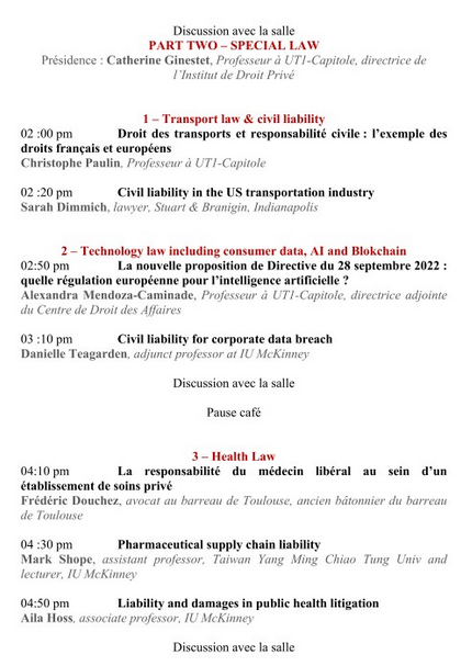 An initiative co-organised by Max Huffman, Vice-Dean and Professor of the Indiana University Robert H. McKinney School of Law and Cécile Mangematin, Professor of Private Law at the Toulouse 1 Capitole University.