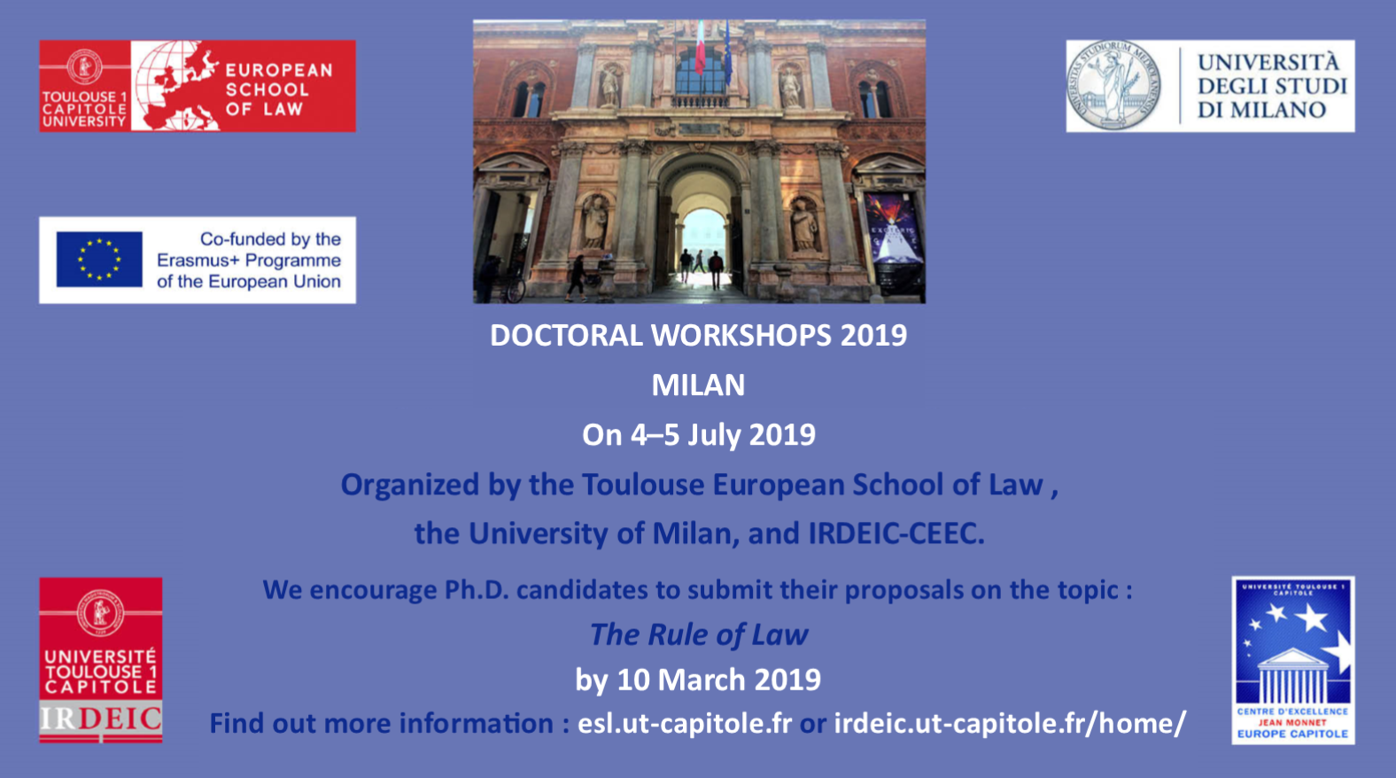 On 4–5 July 2019, the University of Milan (Università degli Studi di Milano) will organize and host in Milan the 2nd Edition of the Doctoral Seminar in Public, International and European Union Law, which will be also the 4th Edition of the Toulouse European School of Law Doctoral workshops.