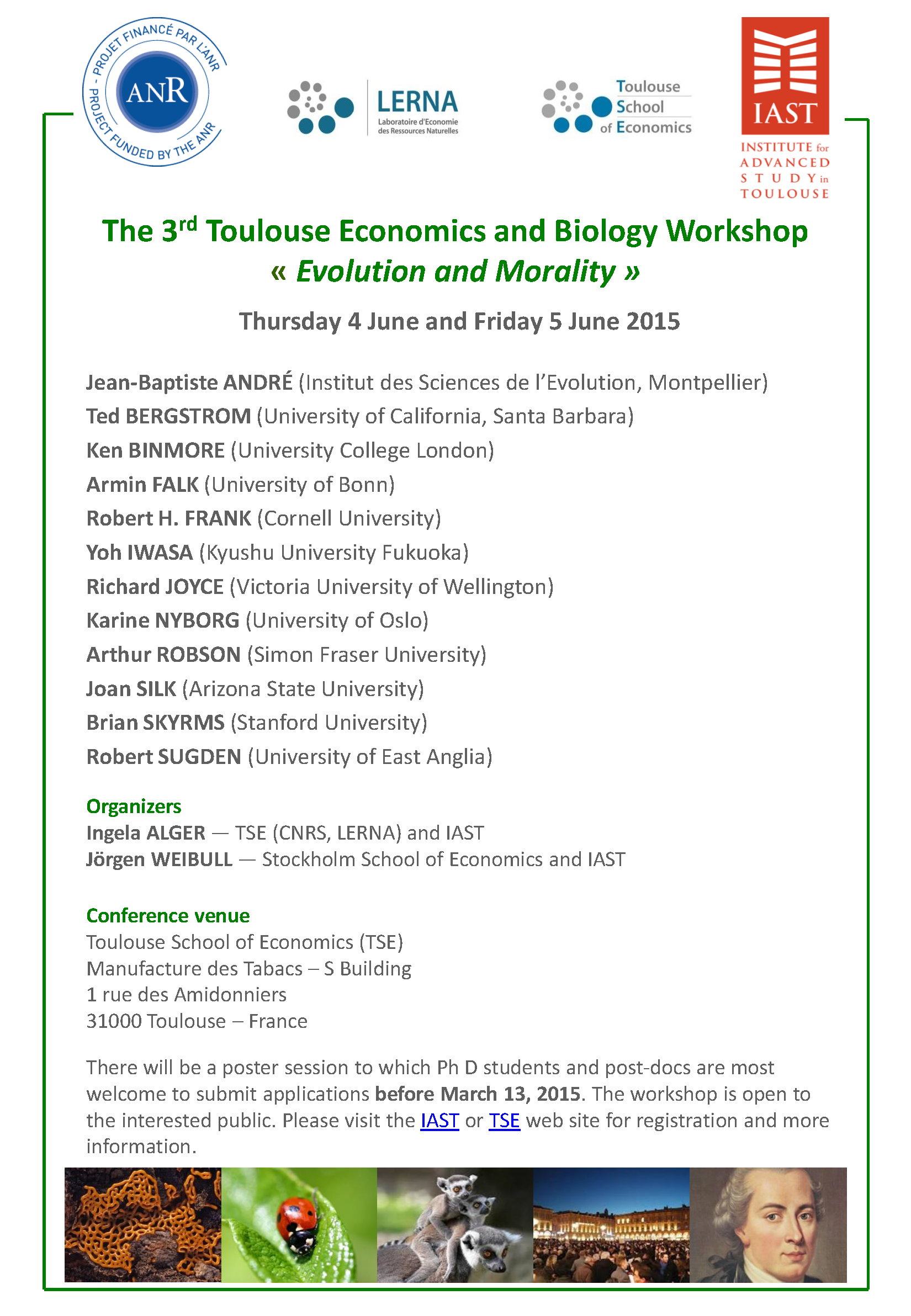 "Evolution and Morality", 3rd Toulouse Economics and Biology Workshop