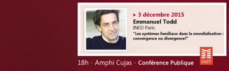 Emmanuel Todd, historian, anthropologist, demographer, sociologist and political scientist from INED Paris will talk on "Globalization and the changing nature of families".