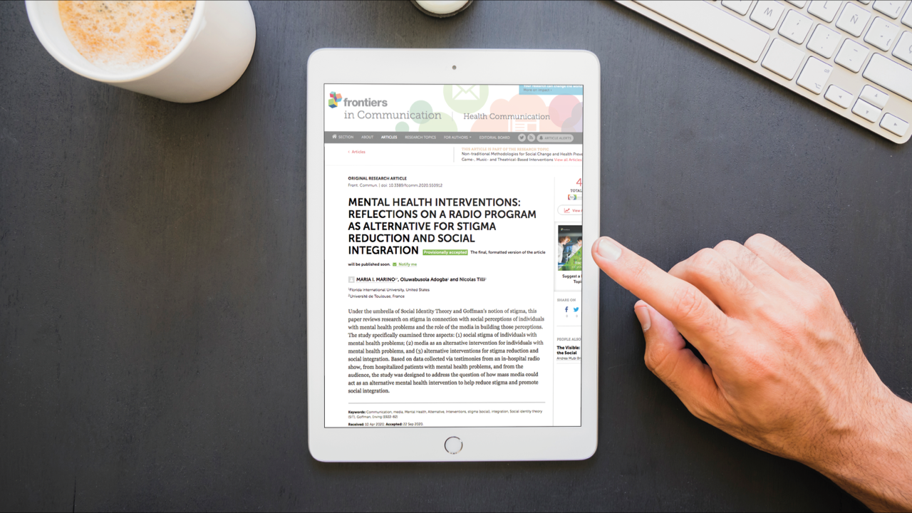 A publication by three researchers from the international research consortium behind the #SMCU2020 colloquium, Maria Inès Marino and Oluwabusola Adogba from Florida International University (USA) and Nicolàs Tilli from Université Toulouse 1 Capitole (France) has just been accepted for publication by the publisher Frontiers, under the research fields “Communication” and “Health Communication”. Frontiers is the 5th most cited publisher in 2020.