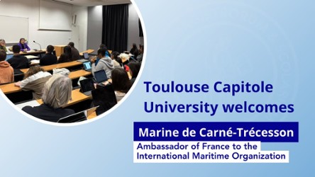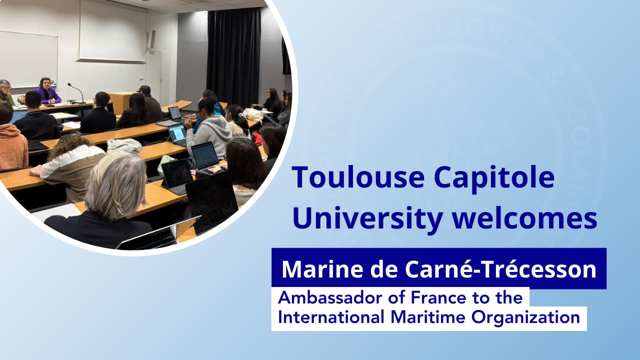On Tuesday 6 January, Toulouse Capitole University had the honour of welcoming Her Excellency Marine de Carné-Trécesson, Ambassador and Permanent Representative of France to the International Maritime Organization (IMO), for a discussion with students.